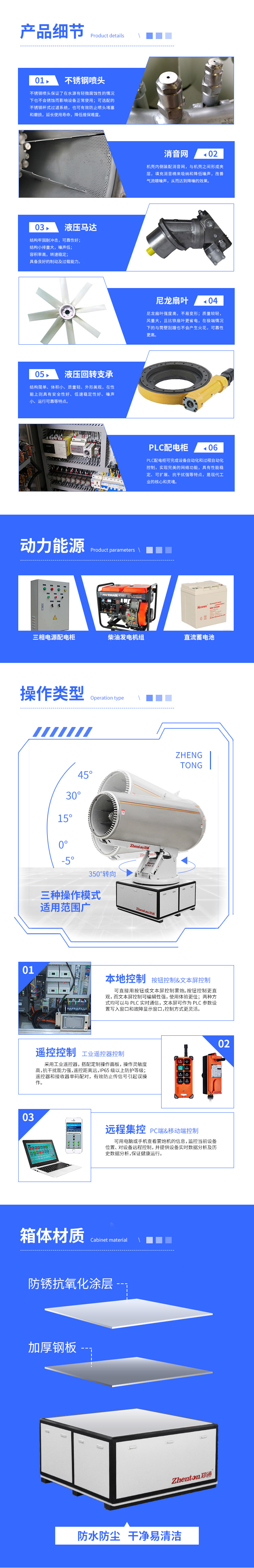 主要用途:用于煤矿场、城市拆迁工地、冶金钢铁企业、采矿区域、煤化工企业、水泥厂、火力发电厂、物料和矿产品露天堆放厂、混凝土处理厂、垃圾堆放场、垃圾焚烧厂、沙厂、干式物料仓库、露天爆破、重度粉尘区域。
