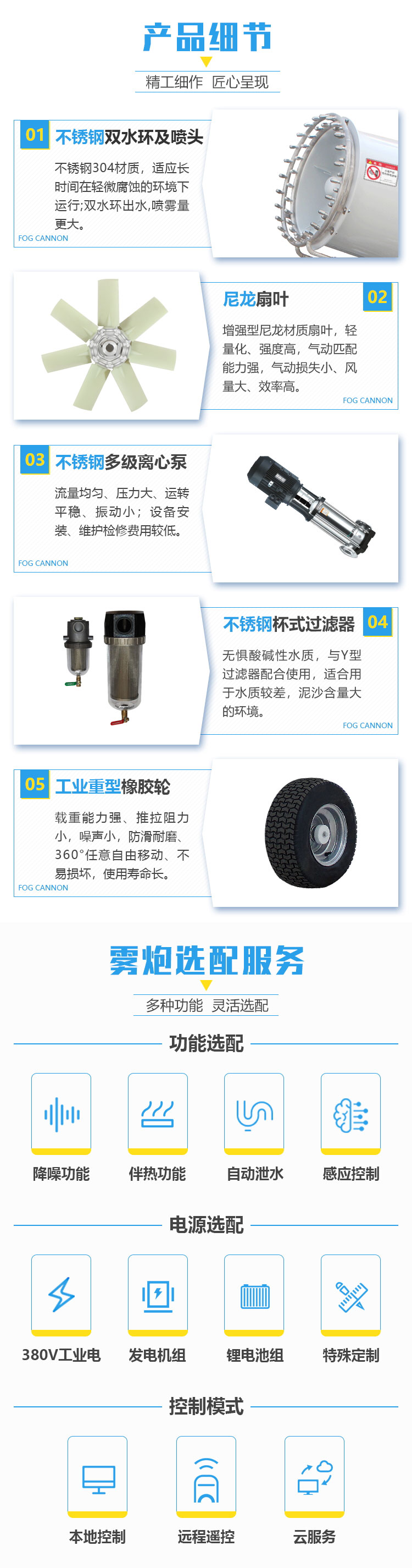 产品特点:市政绿化移动式雾炮机使用轻量化全铝材质机身,结构紧凑轻巧,大大降低了设备自重,再配合橡胶轮拖车架,移动迅速便捷,不易压坏草坪、植被;采用不锈钢多级离心泵与双水环设计,雾量更大、覆盖广泛。