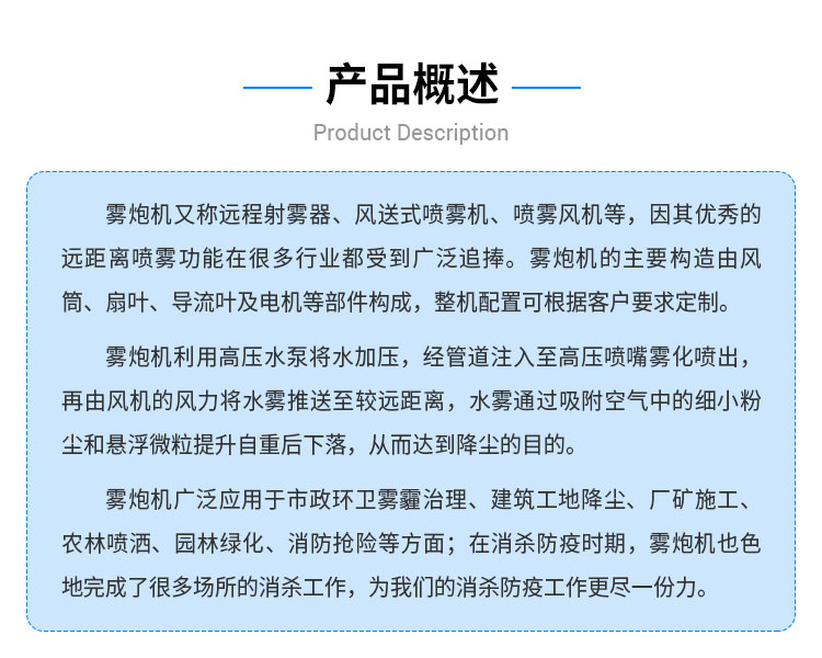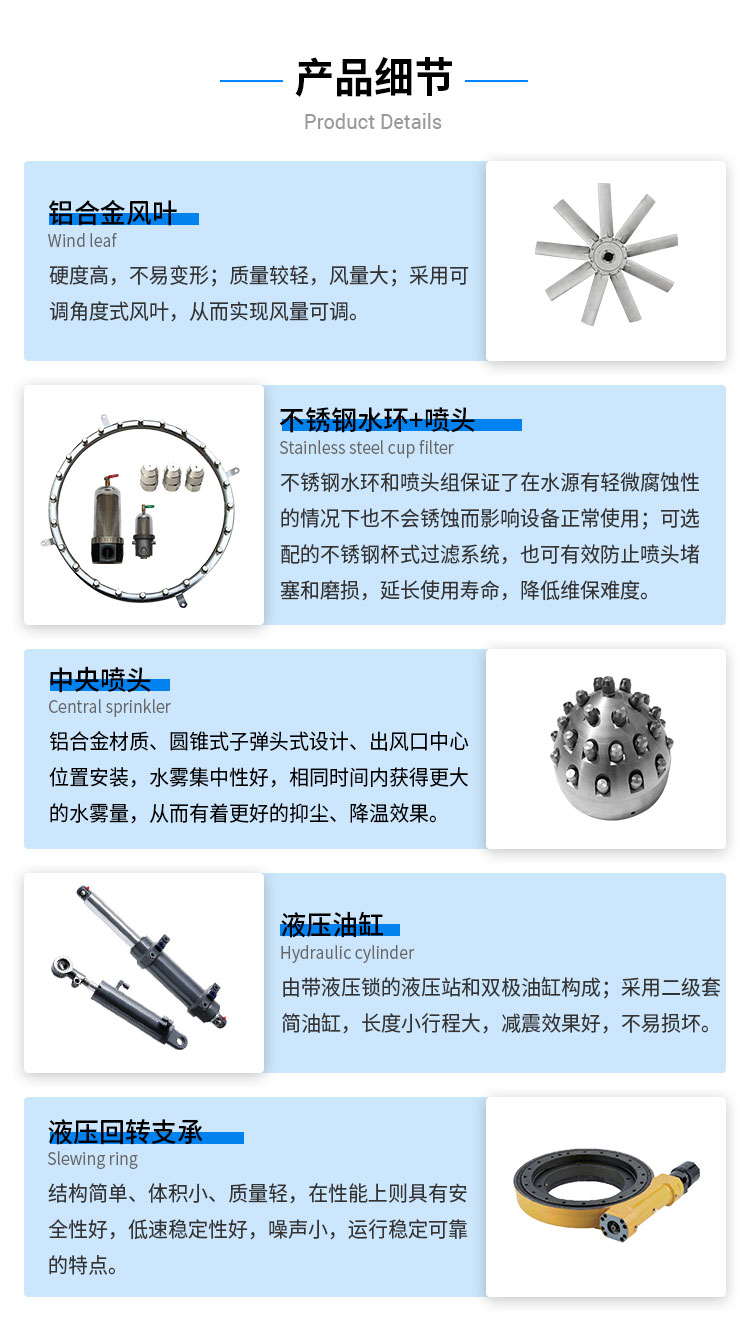 主要用途:用于城市拆迁工地、冶金钢铁企业、采矿区域、煤化工企业、水泥厂、火力发电厂、建筑工地、物料和矿产品露天堆放厂、混凝土处理厂、垃圾堆放场、垃圾焚烧厂、沙厂、干式物料仓库、露天爆破、重度粉尘区域。
