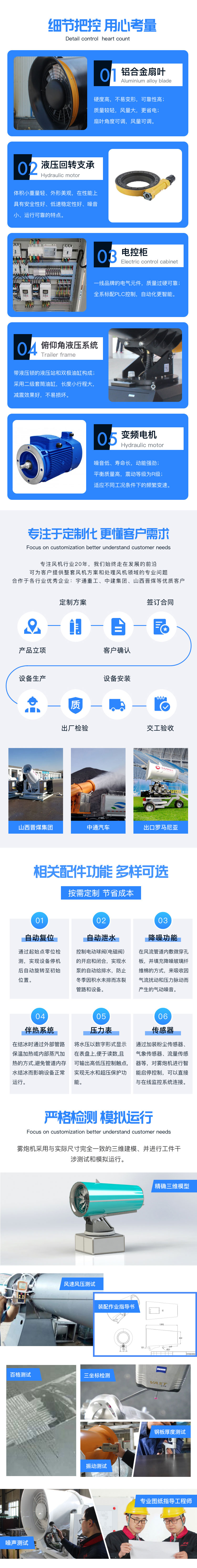 产品特点:煤场降尘雾炮机射程远、覆盖范围广、工作效率高、可以实现精量喷雾;配套动力灵活,使用安全可靠。