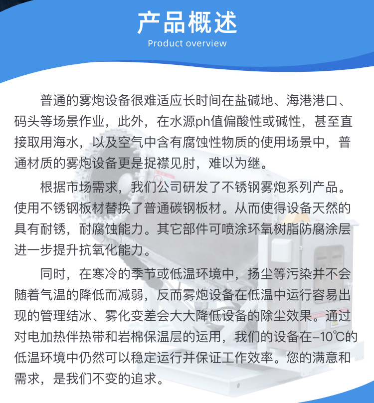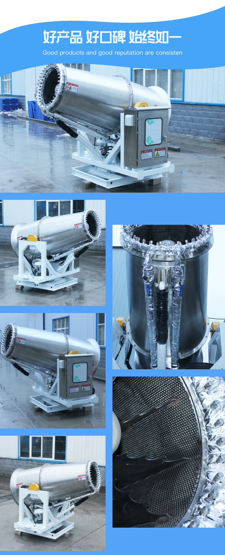 主要用途:用于城市拆迁工地、冶金钢铁企业、采矿区域、煤化工企业、水泥厂、火力发电厂、建筑工地、物料和矿产品露天堆放厂、混凝土处理厂、垃圾堆放场、垃圾焚烧厂、沙厂、干式物料仓库、露天爆破、重度粉尘区域。