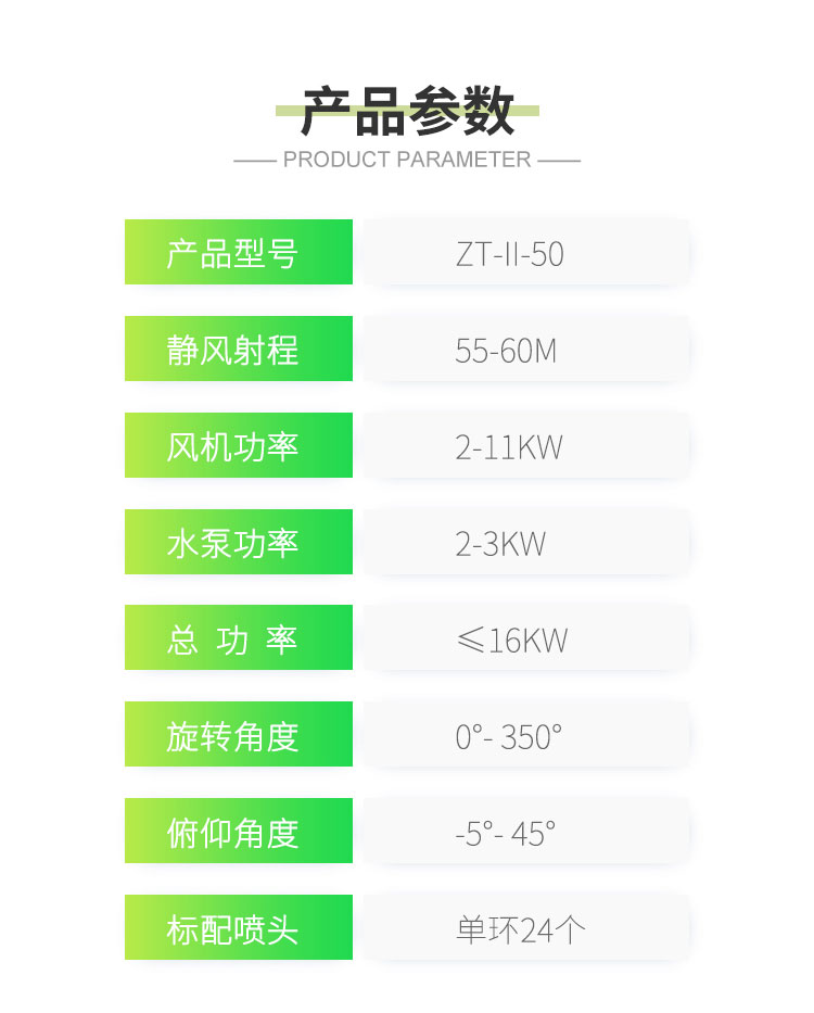 产品特点:市政绿化车载式雾炮机可移动、可装车、可固定、适应性强;射程远、覆盖面积大,加速尘埃降沉,抑制尘埃扩散,结构可靠、运行稳定、作业效率高,遥控控制或全自动运行,灵活切换,启动便捷。