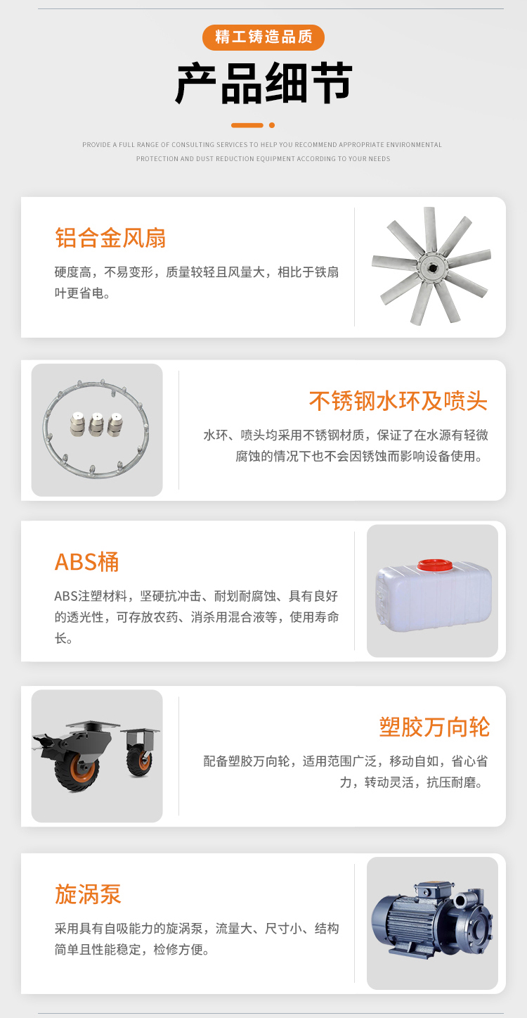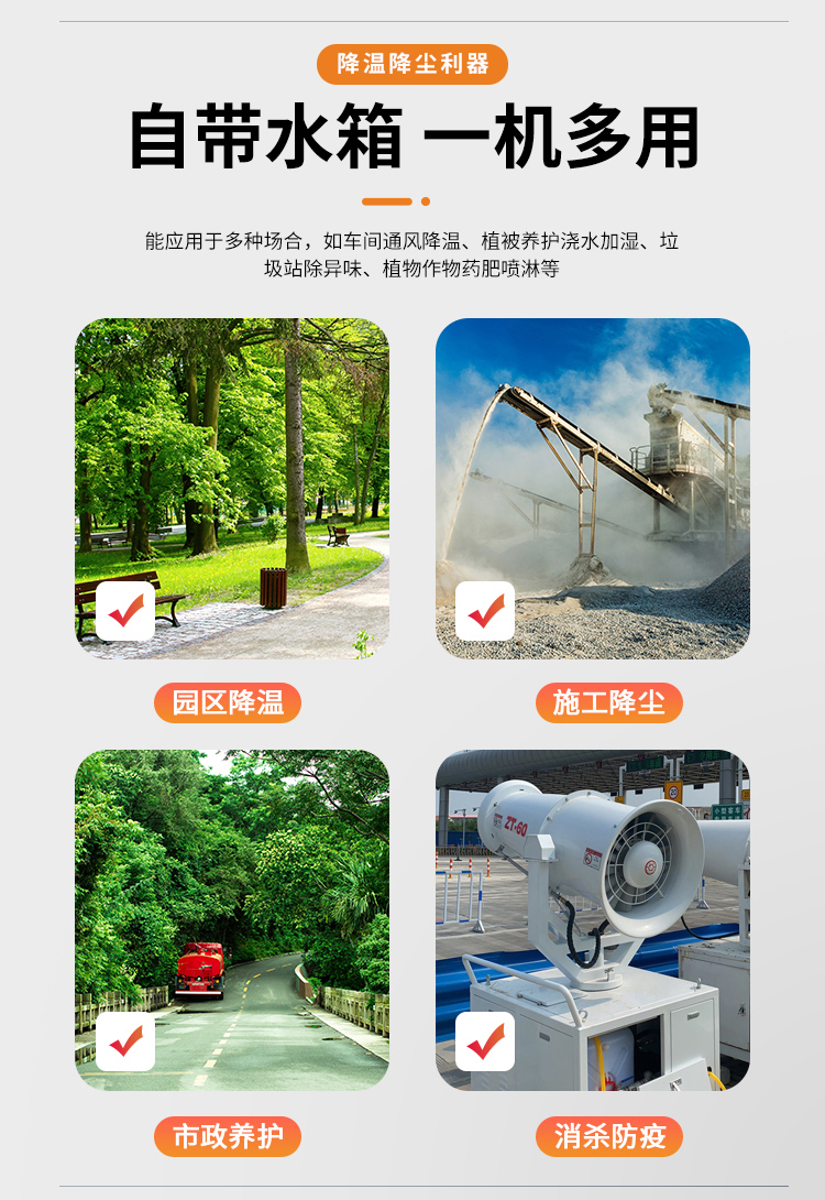 主要用途:适用于城市拆迁工地、冶金钢铁企业、采矿区域、煤化工企业、水泥厂、火力发电厂、建筑工地、物料和矿产品露天堆放厂、混凝土处理厂、垃圾堆放场、垃圾焚烧厂、沙厂、干式物料仓库、露天爆破区域。