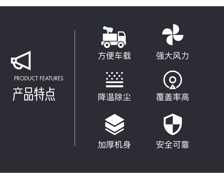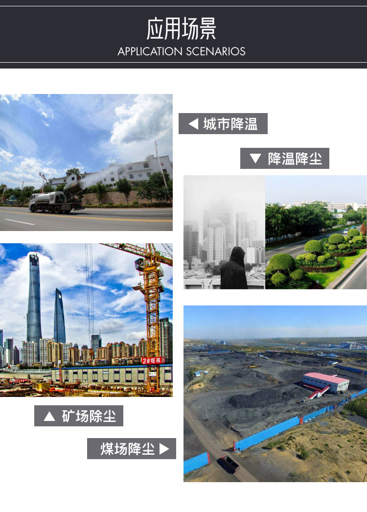 主要用途:适用于城市绿化、降温降尘、公共场所降温、消毒杀菌等卫生防疫作业。