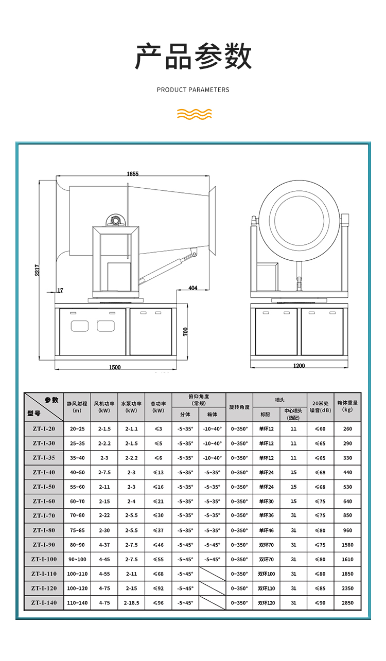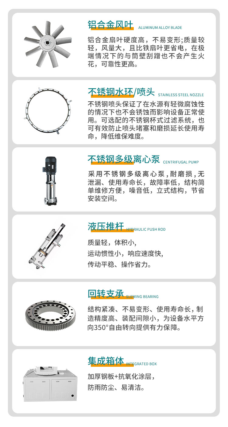 产品特点:70米降尘雾炮机通过喷洒出直径与灰尘直径相近的微小雾粒并与空气中的灰尘直接接触,使得灰尘湿润后通过吸附作用与周围的灰尘凝结成团,再通过重力的作用使灰尘下沉,从而达到抑尘的效果。