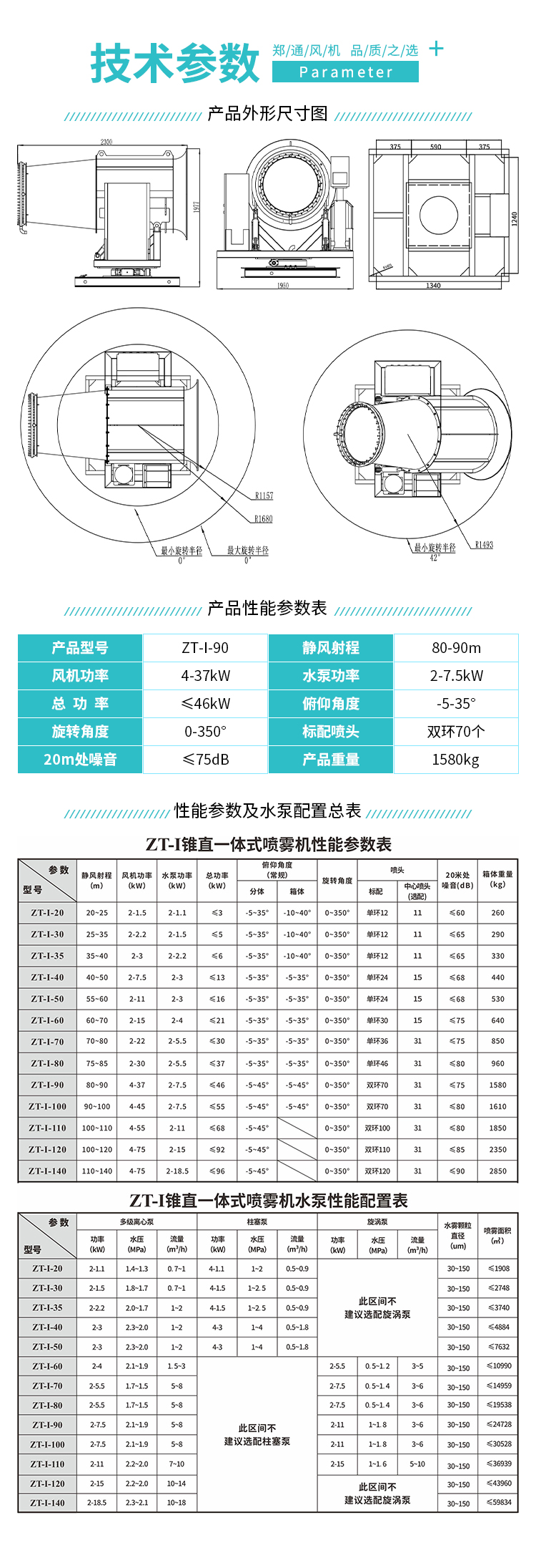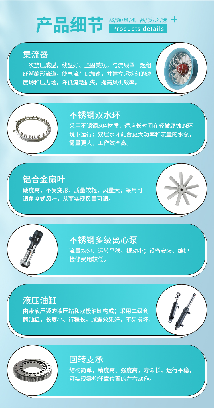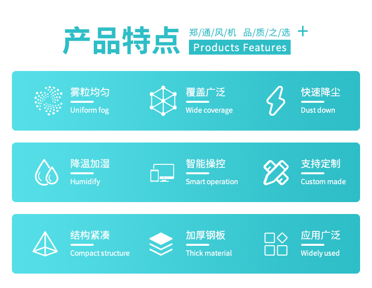 产品特点:90米远程雾炮机动力强、射程远、覆盖广泛、可实现精量喷雾;工作效能高、喷雾加湿更快,能迅速降温抑尘;配件驱动可灵活定制,操作便捷,灵活方便。