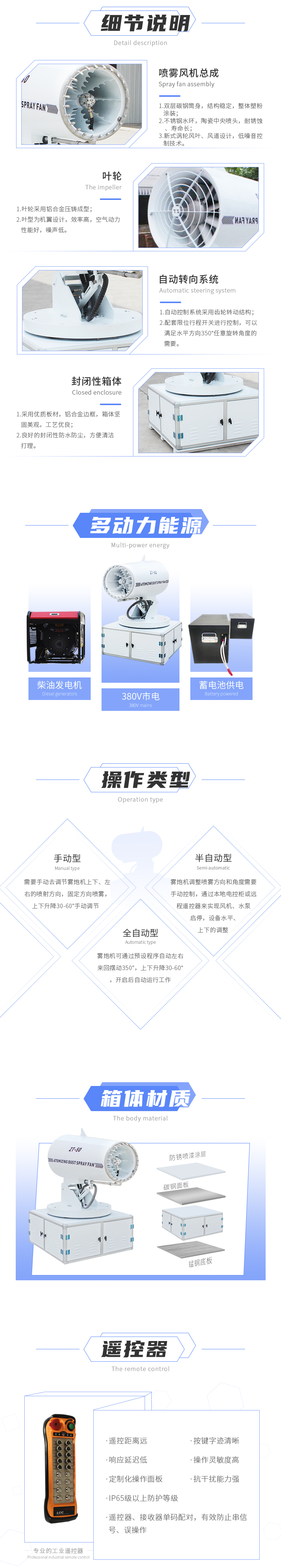 产品特点:化工厂房除尘雾炮机可移动、可装车、可固定、适应性强;射程远、覆盖面积大,加速尘埃降沉,抑制尘埃扩散,结构可靠、运行稳定、作业效率高,??乜刂苹蛉远诵?灵活切换,启动便捷。