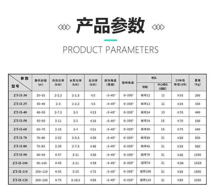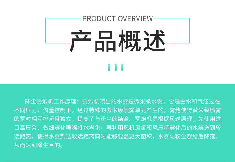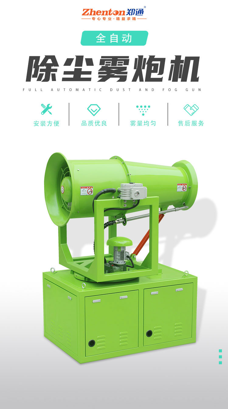 产品特点:大仰角雾炮机采用箱体式结构,安装方便;除尘效果好,覆盖范围广,工作效率高。