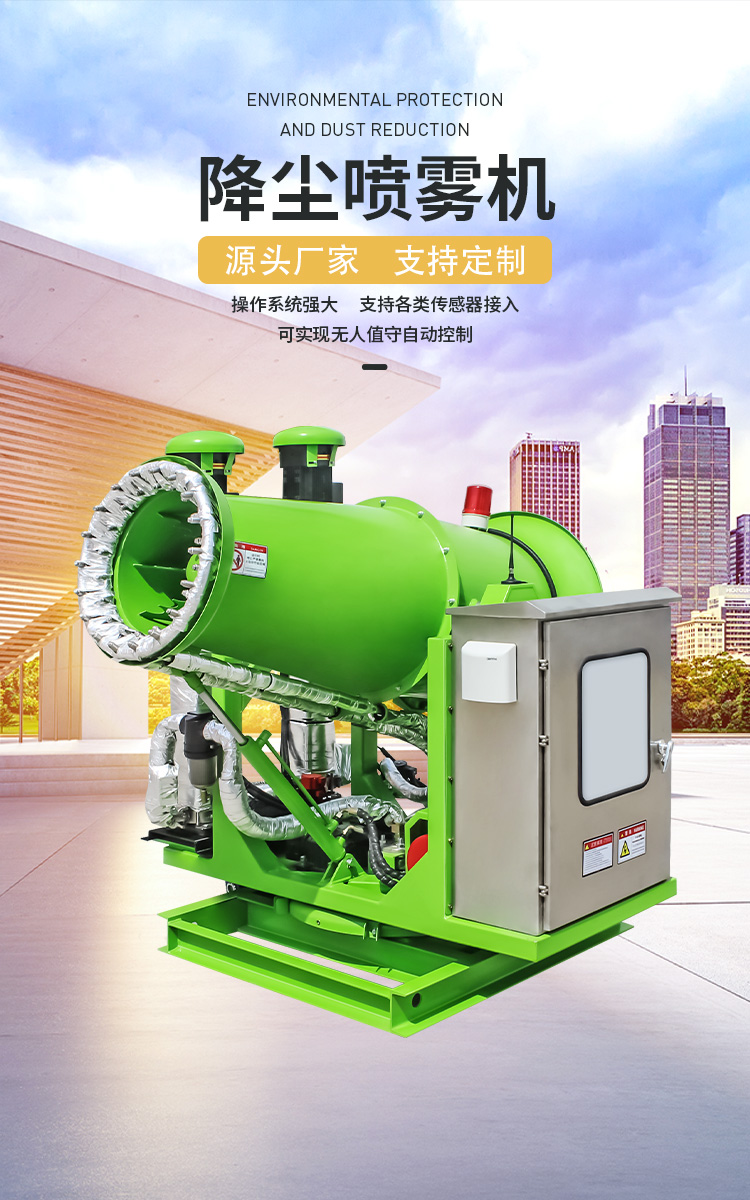 产品特点:固定式双泵降尘雾炮机采用立式结构,工作稳定,自动供水,自动喷雾,自动旋转,自动俯仰,也可采用定时喷雾,定点喷雾等更智能的操作模式。
