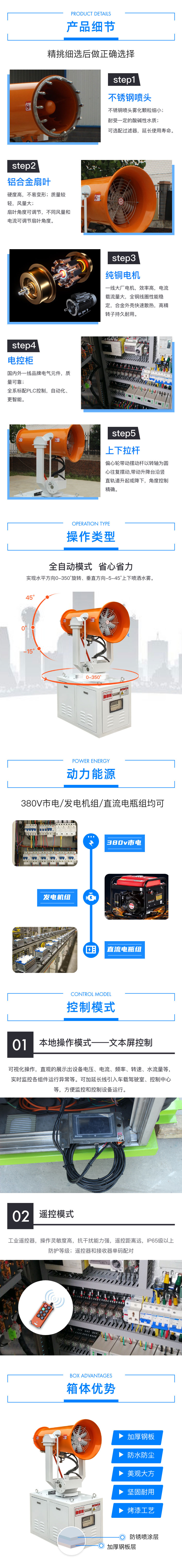 产品特点:工地射流雾炮风机射程远、覆盖面积大,加速尘埃降沉,抑制尘埃扩散;控制方式灵活,启动便捷;结构合理、运行稳定、噪音低,作业效率高。
