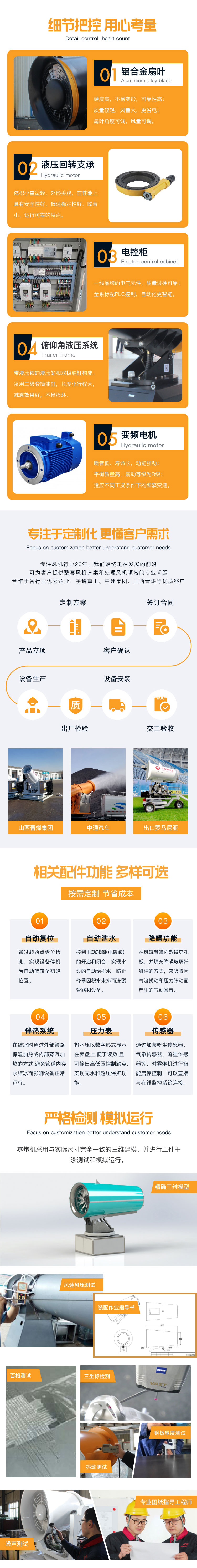 产品特点:100米固定式雾炮机射程远、覆盖范围广、工作效率高、可以实现精量喷雾;配套动力灵活,使用安全可靠。
