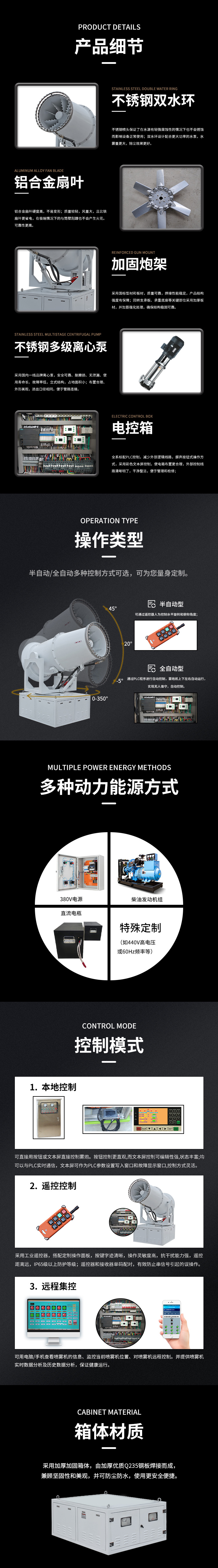 产品特点:100米双水箱雾炮机喷雾距离远、覆盖范围广、雾化颗粒细、降尘效果佳、运行平稳使用安全可靠。
