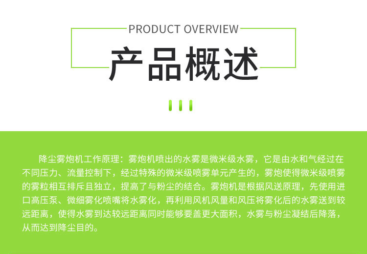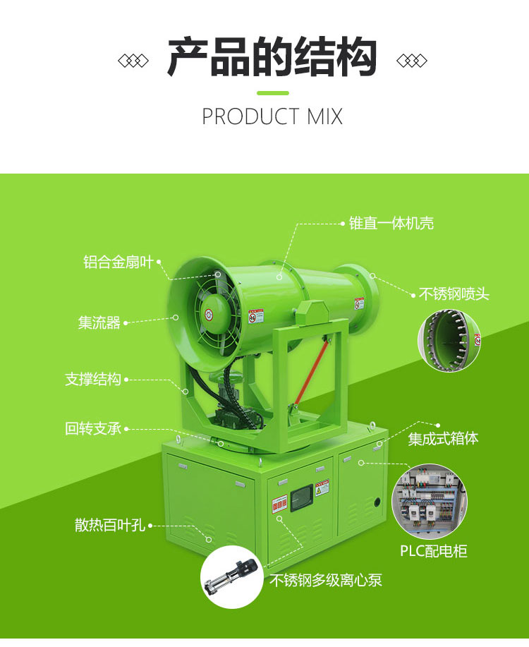 产品特点:园林全自动降尘雾炮机采用箱体式结构,安装方便;除尘效果好,覆盖范围广,工作效率高。