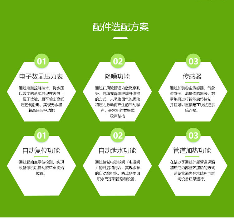 主要用途:建筑工地 煤场,矿场、料场、码头工业除尘,农业,园林绿化等飞机场、高速公路、车站、码头、公共场所、运动场地、炎热场地等降尘保湿降温消毒。