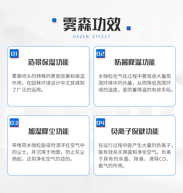 雾森系统具有雾化细密、出雾快、加湿降尘等功能。