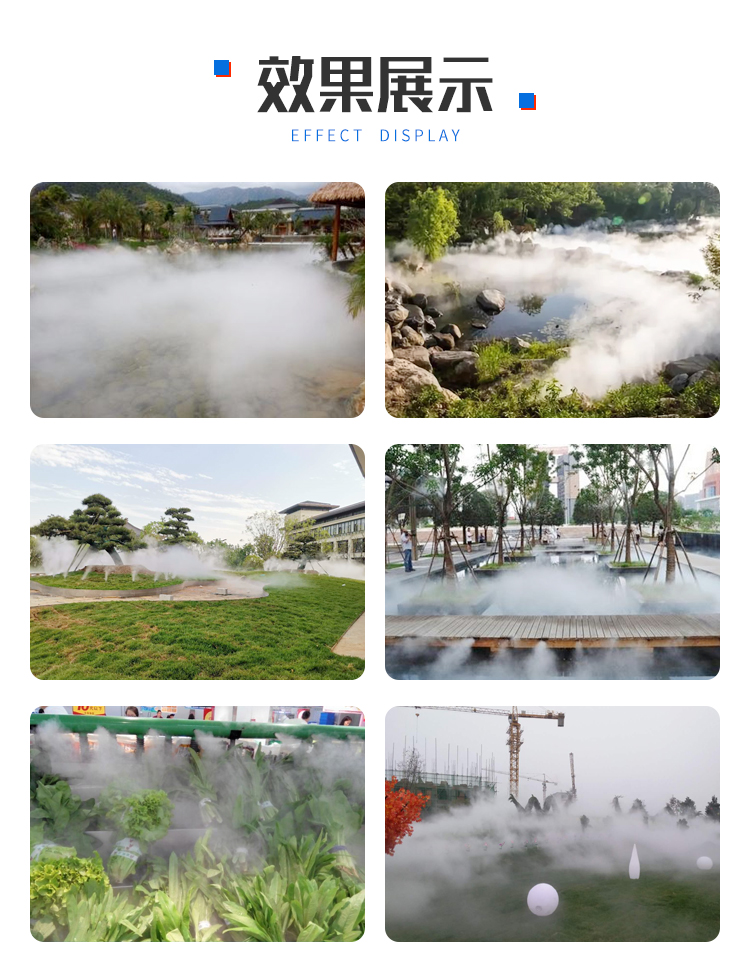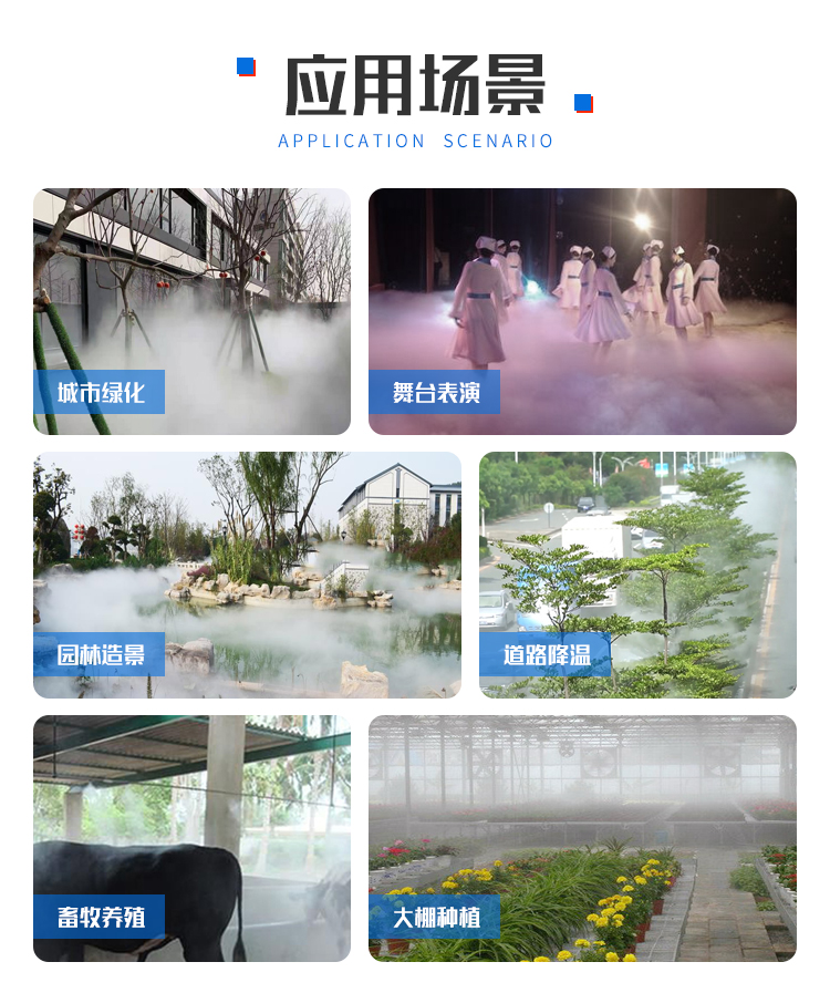 雾森系统的景观效果和保湿作用,在园林环境设计中、畜牧养殖、城市绿化等得到了广泛的运用。