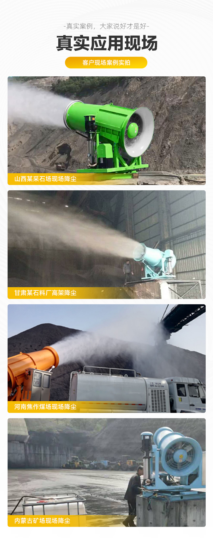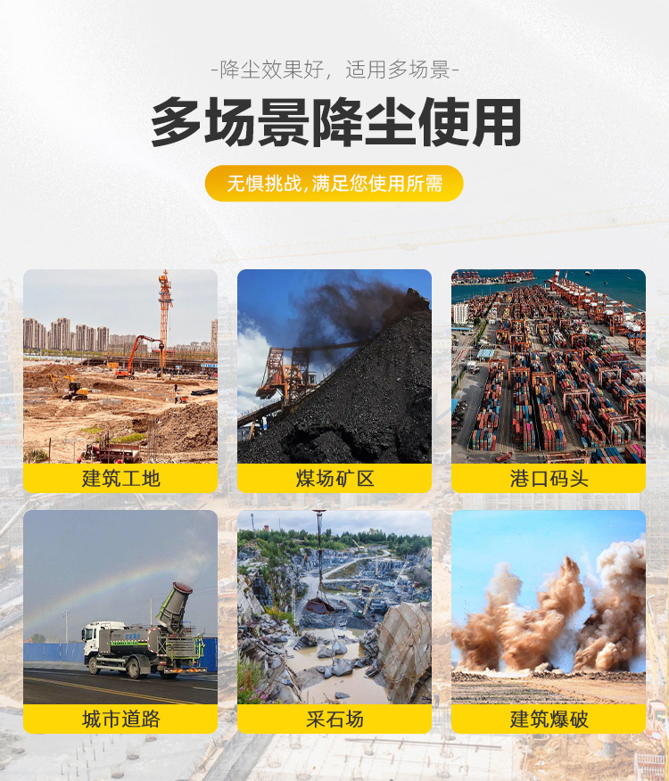 主要用途:建筑工地、煤矿煤场、渣场和粉尘场所、垃圾填埋场、港口码头和货运物流园区、农业园区和植物园、市政景观和环境治理