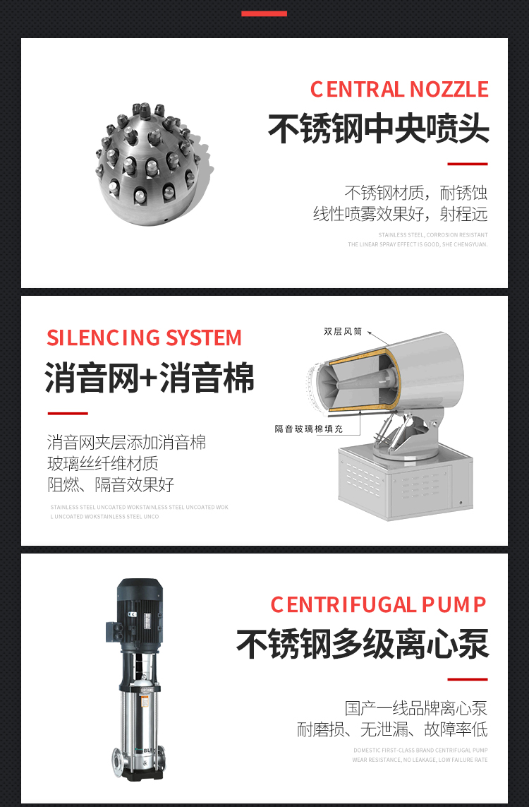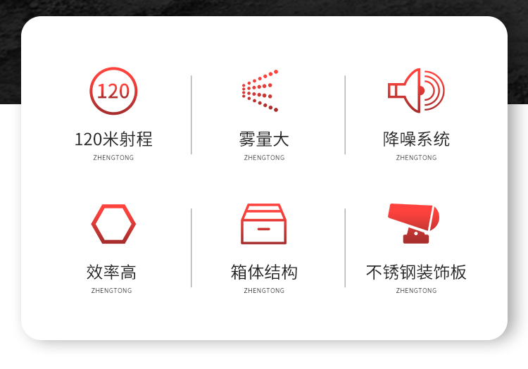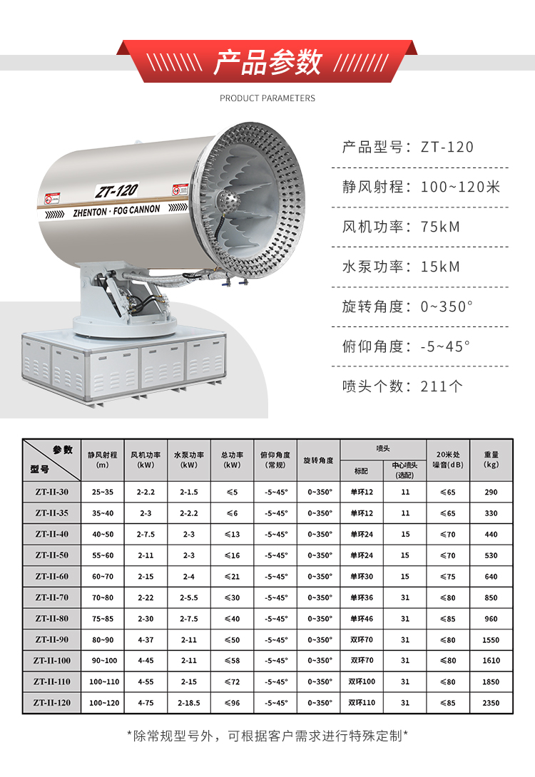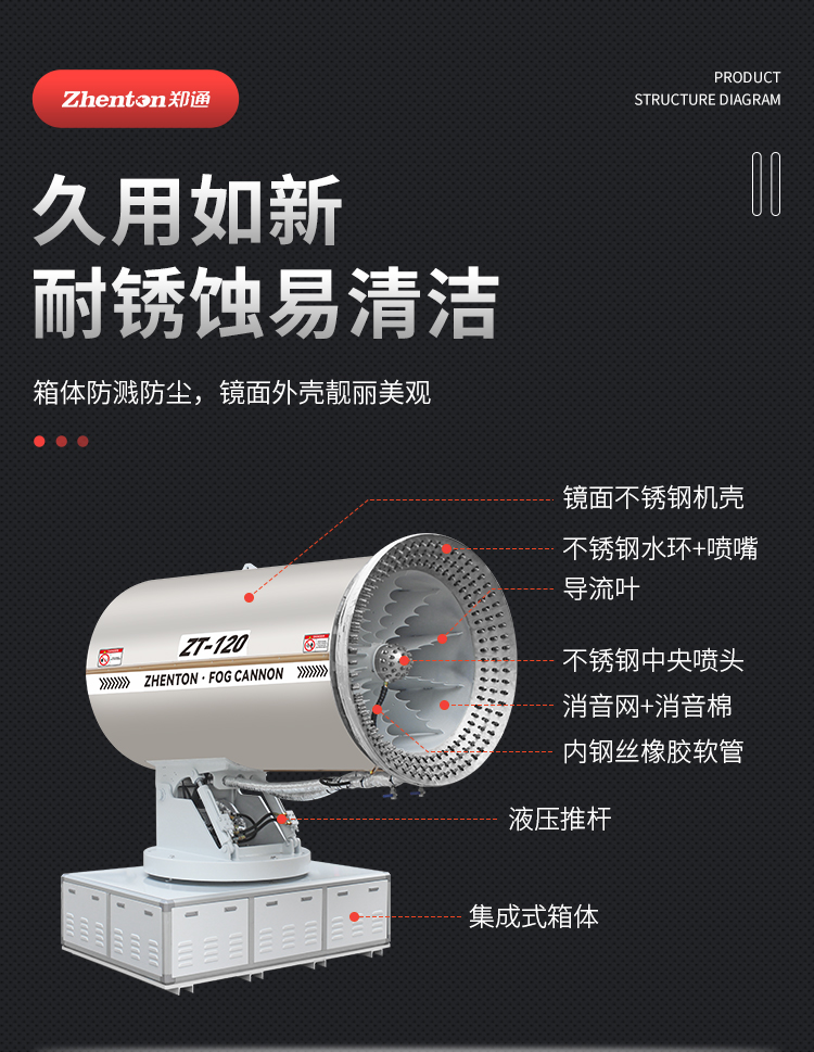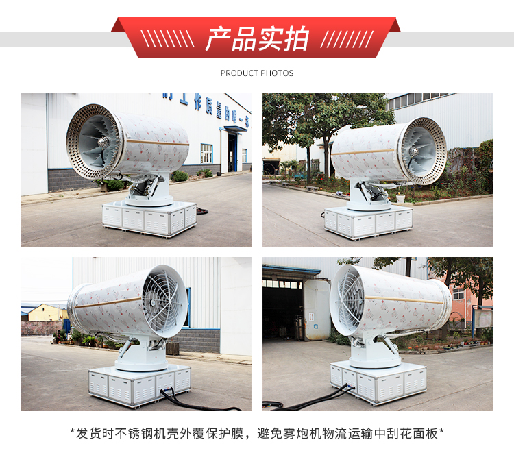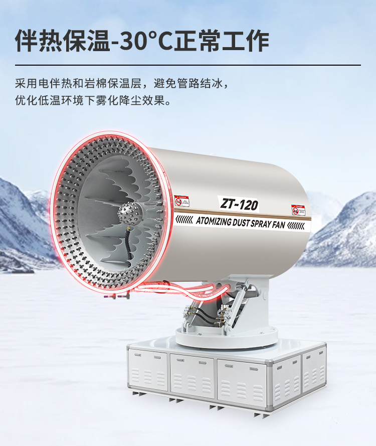 产品特点:这款环保降尘雾炮机,通体采用不锈钢材质制造,耐腐蚀易清洁,外形美观,120米射程,雾化细,效率高。采用电伴热和岩棉保温层,低温环境也能稳定运行。