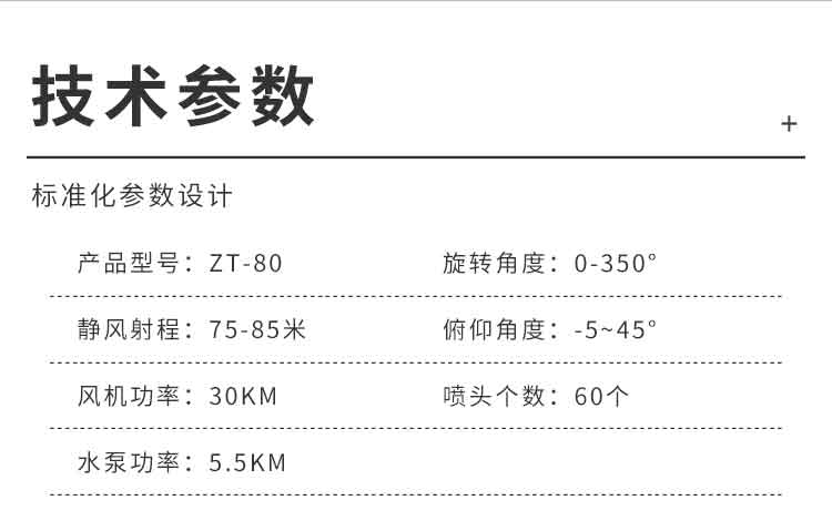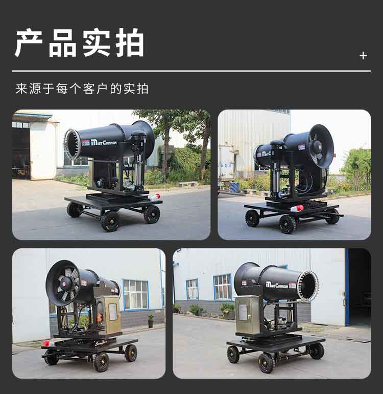 主要用途:冶金钢铁企业、采矿区域、煤化工企业、水泥厂、火力发电厂、城市拆迁工地、建筑工地、露天堆放厂、混凝土处理厂、垃圾堆放场、垃圾焚烧厂、城市道路降尘、喷雾打药等场景。