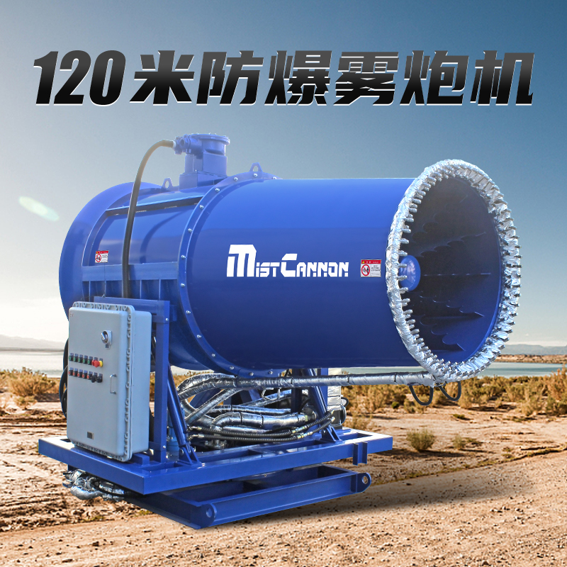 主要用途:120 型防爆雾炮机主要是用于石油化工行业,煤矿场,露天煤棚、粉尘车间、料场、垃圾填埋场、钢铁厂、焦化厂等易燃易爆的场景使用。