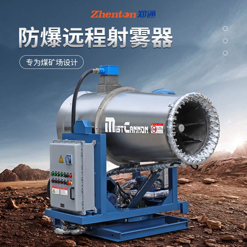 产品特点:这款防爆远程射雾器专为煤矿、石料及矿场等高粉尘环境设计,60米射程,它通过高压泵将水加压雾化成 30-150 微米的超细雾滴,M2.5 去除率超 85%,一机满足多种降尘需求。支持手动、???、PLC 自动等多种操作模式,可 360° 旋转喷雾,覆盖范围广且无死角。