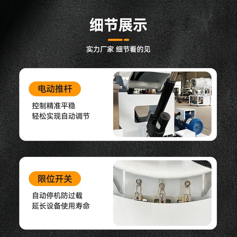 产品特点:这款50型港口降尘移动式雾炮机采用三轮拖车设计,移动灵活,适用于港口码头、矿山矿场等多场景降尘作业。静风射程可达45~50米,总功率14kW,抑尘覆盖范围广。旋转角度0~320°、俯仰角度-5°~35°,可精准调节喷射方向。配备控制面板,实时与PLC通信,实现复杂控制功能;变频调节灵活节能,电动推杆助力俯仰调整。微孔板消音层有效降噪,空心橡胶轮耐磨耐用,快速插头即插即用。