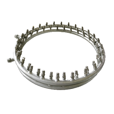 两圈水环,—个进水口,可有效增加喷头数量,且喷头数量与喷头口径搭配灵活。